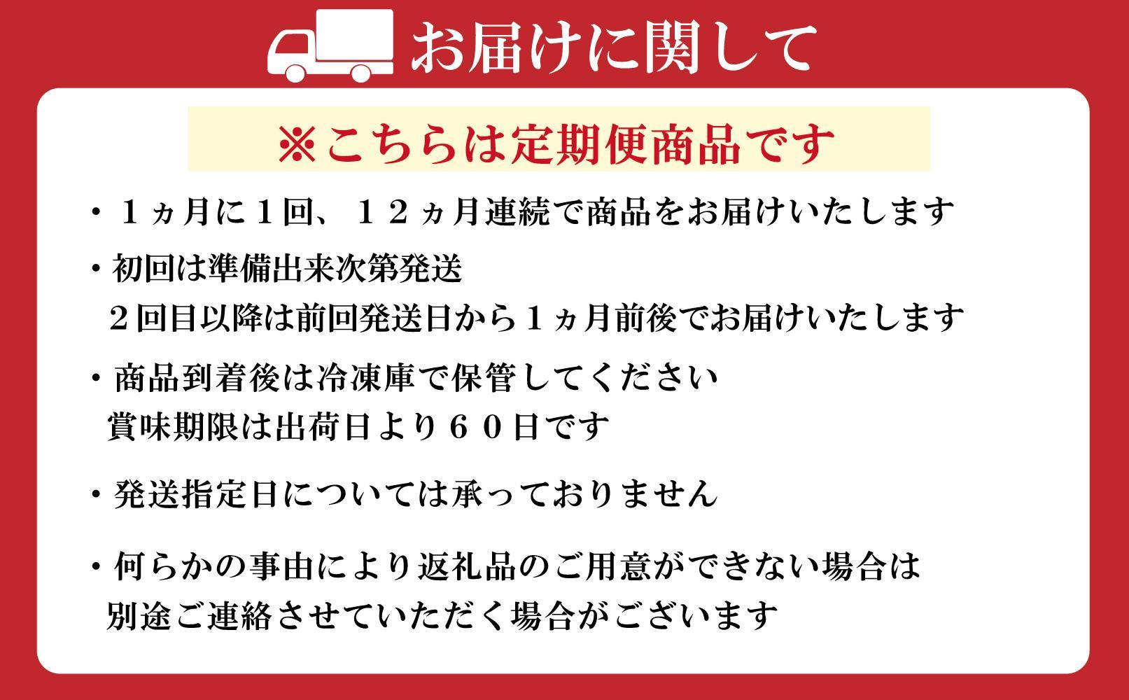 全12回の定期便です。12か月連続で毎月お届けいたします。