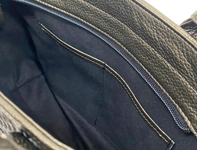機能性も重視したデザインで、両サイドにはスマホを入れる事のできるオープンポケットつき。また、貴重品を安心して入れる事の出来るファスナーポケットも前後にあります。底鋲つきなので置きやすさも抜群。
