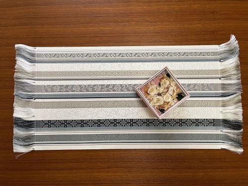その博多帯そのものを使用した瑞峰間道柄テーブルセンターです。