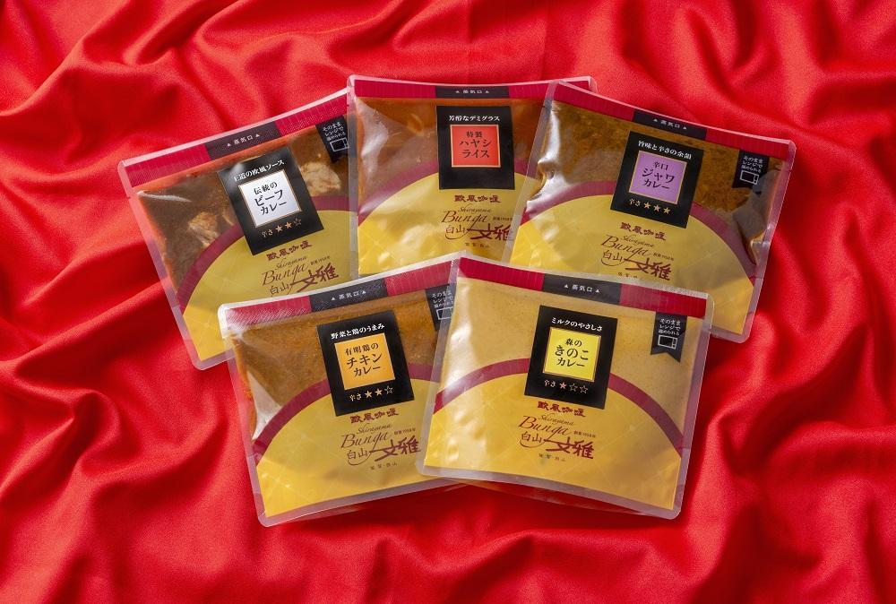 定番【ビーフ・森のキノコ・セイロン風チキンカレー・辛口ジャワカレー・特製ハヤシライス(各1パック)】の詰め合わせです!