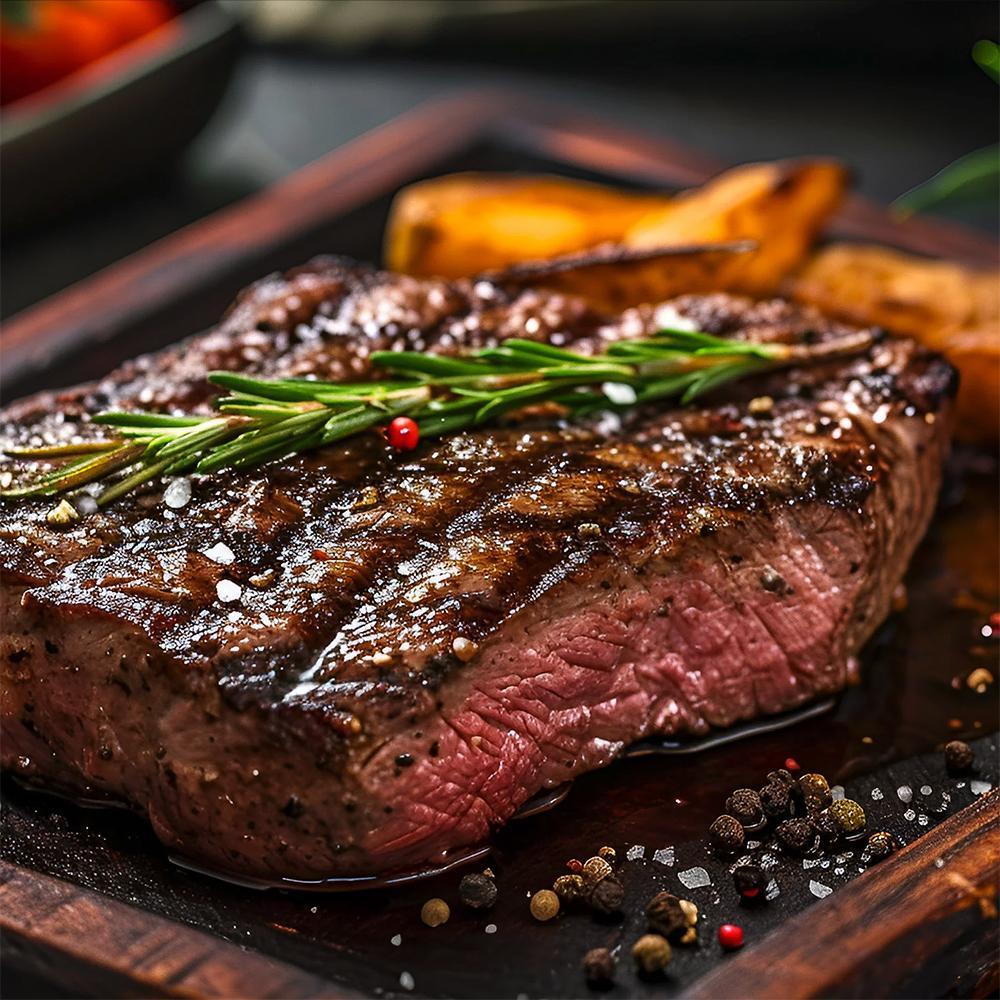厚切りのステーキを使用し、塩と胡椒でシンプルに味付けします。フライパンやグリルで中火から強火で両面をさっと焼き、内部に肉汁を閉じ込めます。焼き上がり後は、アルミホイルで包んで数分間休ませると、肉汁が全体に行き渡り、よりジューシーなステーキに仕上がります。