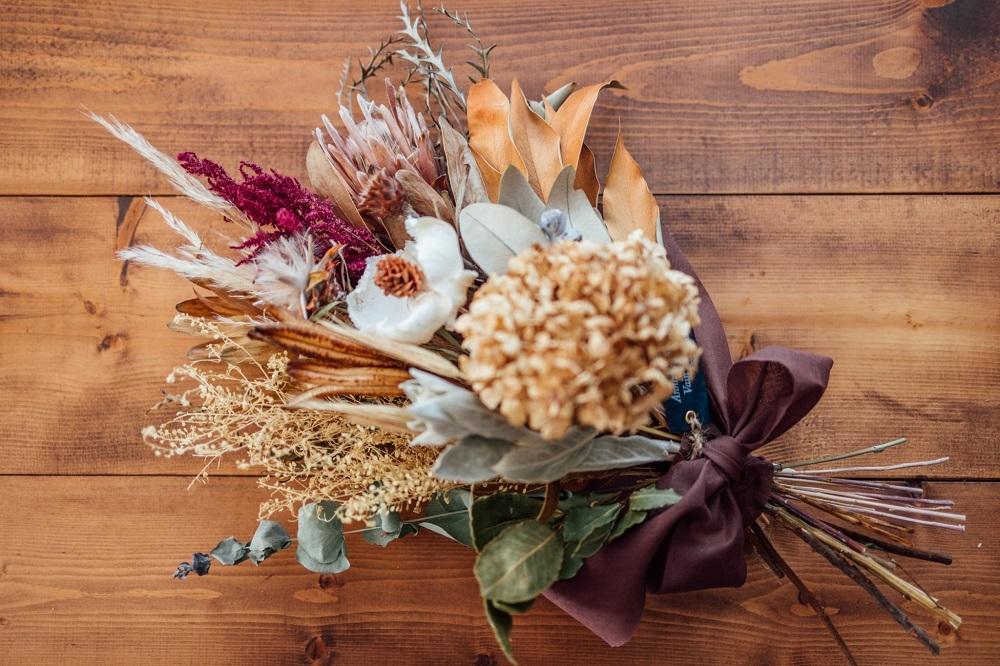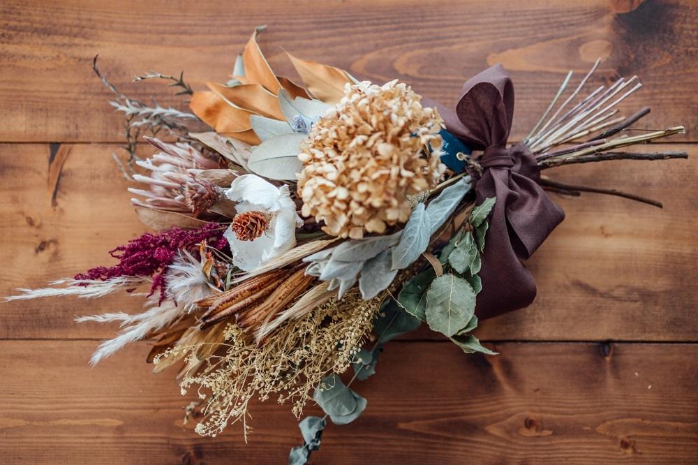 おまかせにてワイルドなドライフラワーで製作します