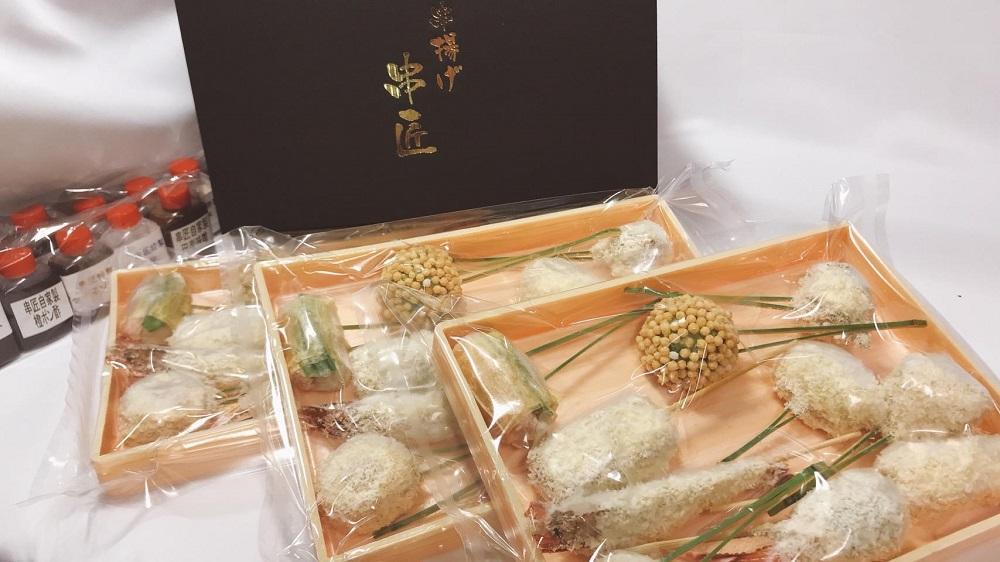 福岡の人気店「串匠」の熟練の職人が、店舗と同じように一本一本丁寧に手作りしている串揚げです。