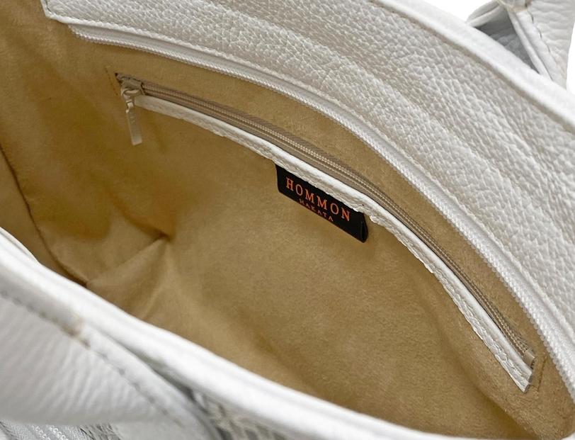 機能性も重視したデザインで、両サイドにはスマホを入れる事のできるオープンポケットつき。また、貴重品を安心して入れる事の出来るファスナーポケットも前後にあります。底鋲つきなので置きやすさも抜群。