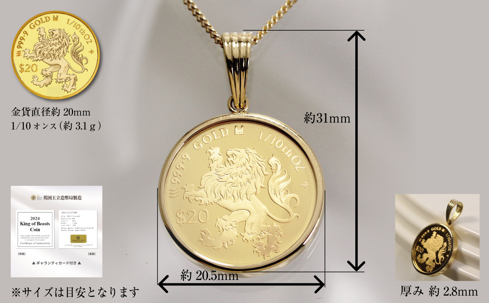 ジャパンゴールドが細部までこだわり企画した2024年 獅子(ライオン) 1/10オンス 純金金貨 18Kネックレスを自信をもってご紹介いたします。