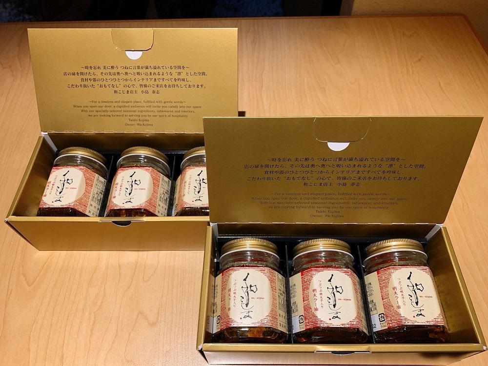 「白い御飯が好きだから…」という理由で、和こじまの創業に至った店主が「御飯に合います」と自信を持っておすすめする和こじま特製の『明太ラー油』。 ラー油にたっぷりの明太子を浸け込んだ逸品は、ラー油の辛味と明太子の辛味、それぞれに異なる辛味が織り成す絶妙な味わいです。 6個セットでのお届けです。 【製造場所】 福岡市中央区高砂1-11-8 今西ビル1階 事業者名:和こじま 連絡先:092-525-0520