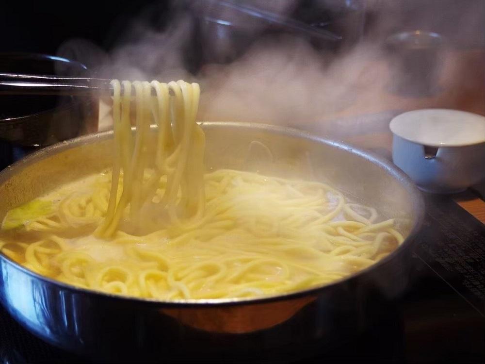 こだわりのちゃんぽん麺2玉もセット。うまみが凝縮されたもつ鍋のスープとちゃんぽん麺は相性抜群です!もつのうまみを最後までお楽しみいただけます。