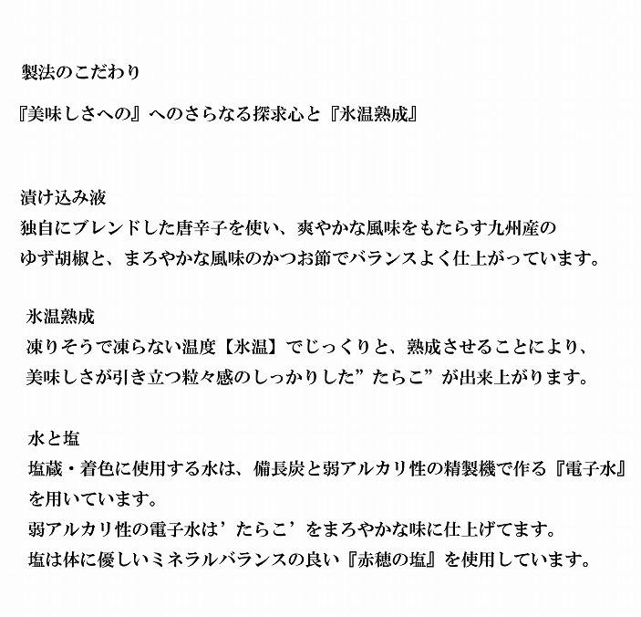 九州産『柚子胡椒』と『鰹節』の風味を効かせ、「氷温(R)熟成」で明太子の旨味を引き