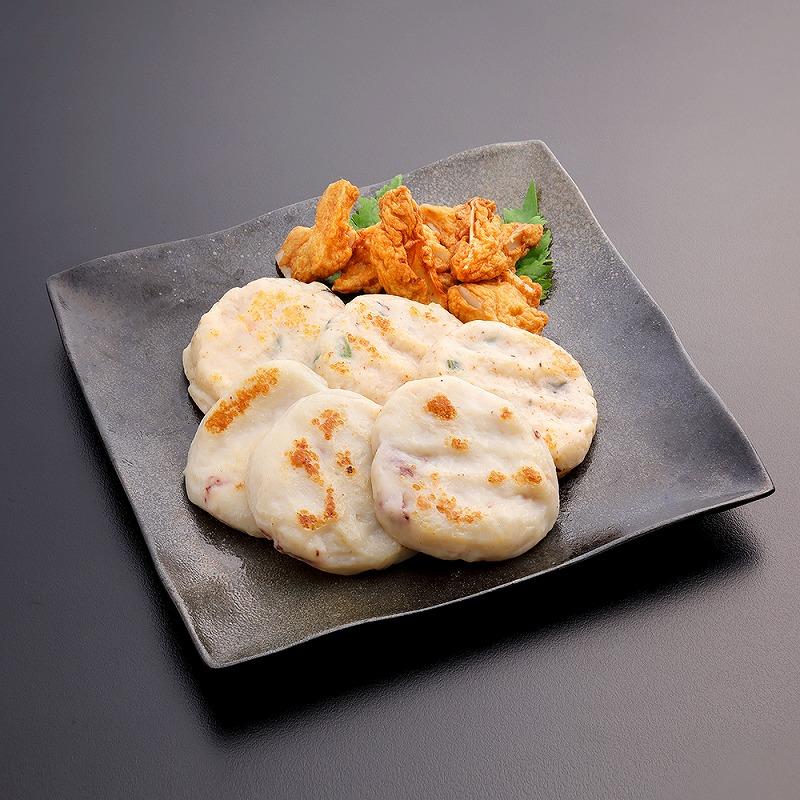 博多の練りもの屋名物の博多なんこつ天。鶏軟骨にすり身を絡めた鶏と魚のコラボ商品。鶏軟骨のコリコリした歯ごたえと、すり身のふわふわ食感が絶妙です。解凍するだけでお召し上がり頂けます。フライパンやグリルで焼くと更に美味しくお召し上がり頂けます。