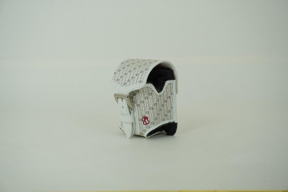 なんと言ってもピカイチのデザイン。博多織と牛革のコンビネーションが特別な高級感を演出。ふわふわのボアで器械をプロテクト。撥水のカーフレザー(牛革)で雨の日でも安心。ホックでベルトに簡単装着。スーッと入れるとパンと閉じる隠しマグネット付きのフタで快適プレー。フック付きでキャディーバッグにしっかり取り付け可能。2ヶ所のアジャスターで幅広い計測器のサイズにフィット。ニコンCOOLSHOT PRO2(100×75×42)のサイズからブッシュネルピンシーカープロX3ジョルト(120×83×43)まで幅広いサイズまで使用可能。