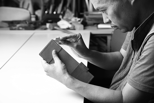 国産高級レザーを使って、障がいのある方が一針一針手縫いで仕上げています。