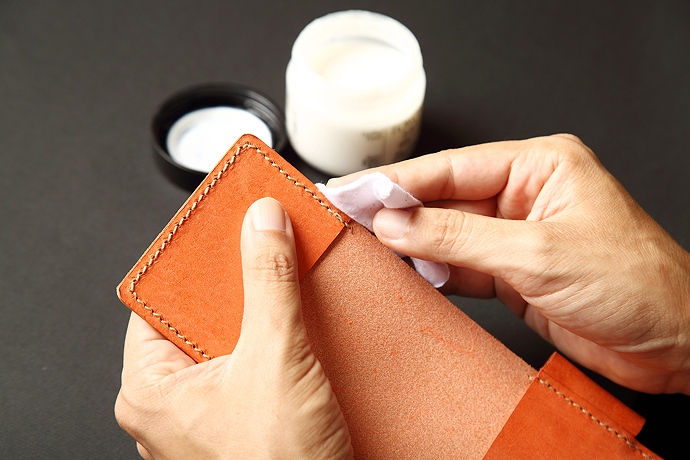 鞣しの際にワックスを含ませ、表面にもワックス仕上をしています。