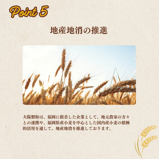 小麦の収穫量が国内第二位の福岡県で収穫された強力系硬質小麦「ミナミノカオリ」を100%使用。
