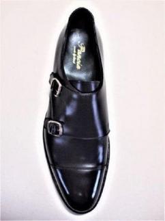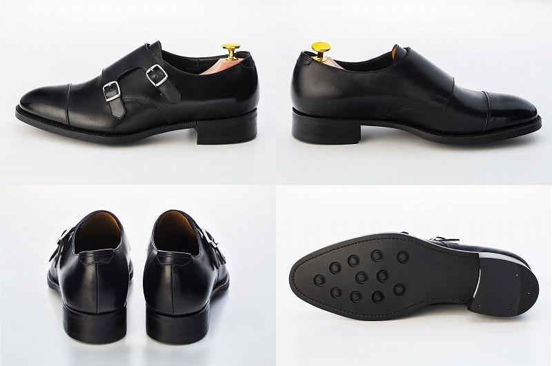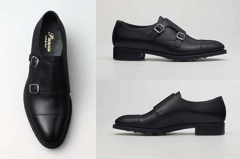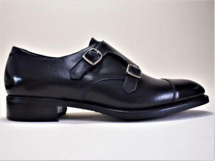 今やビジネスシューズとしても認知されたダブルモンクストラップ。履き口側のバックルをゴムにして履きやすさを考慮しています。踵はドックテイルから日本伝統のバックステイに変更し、さらに強度を上げています。