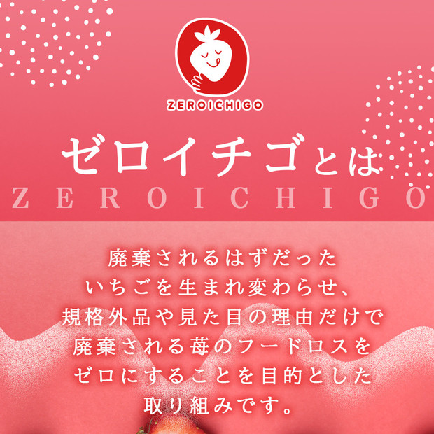 ・ゼロイチゴ(ZEROICHIGO)とは:規格外品や見た目の理由で廃棄されてしまういちごのロスをゼロにすることを目的とした「ゼロイチゴ(ZEROICHIGO)」プロジェクトにより、廃棄される苺を有効活用し、食品ロスの削減に貢献しています。