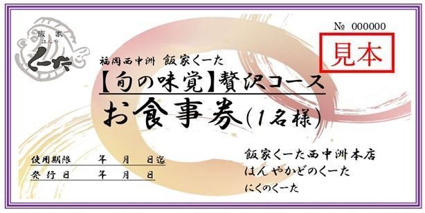 飯家くーた西中洲本店、はんやかどのくーた、にくのくーた3店舗のいずれかでご利用いただける「西中洲くーた旬の味覚満喫コース お食事券(1名様)」です。