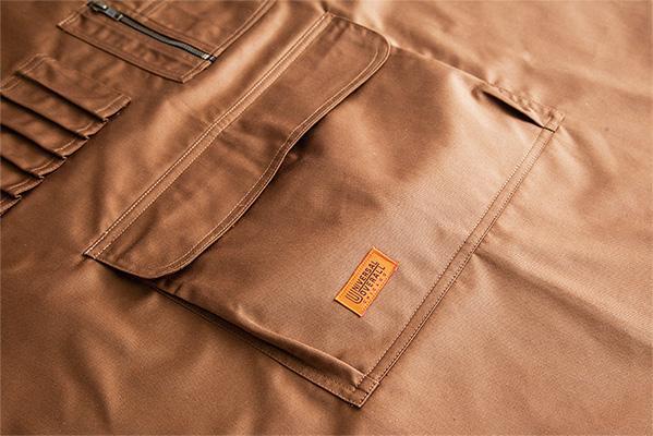 フライトジャケットの代表MA-1のディティールをエプロンに取り入れました。