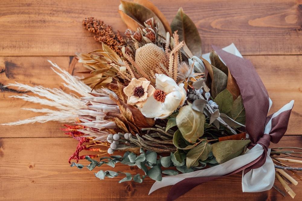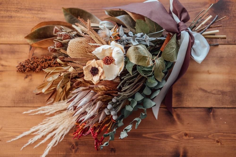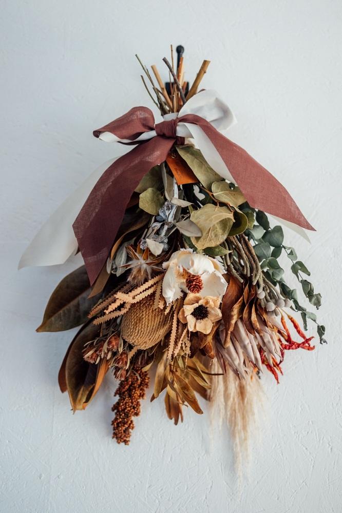 〇お花を一つひとつアトリエでドライアップし、店主が束ねたアレンジスワッグです。