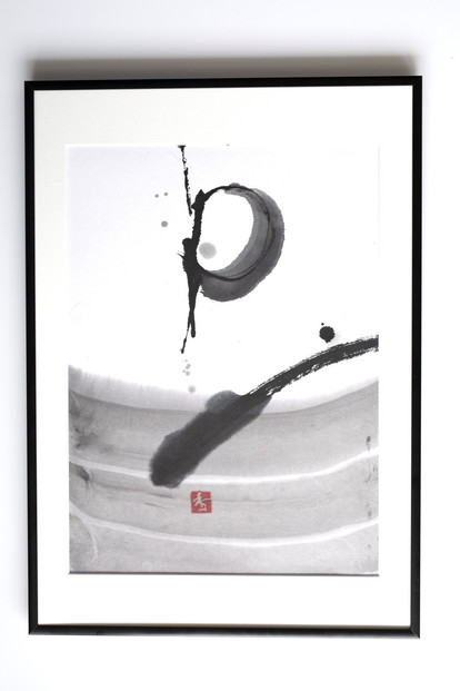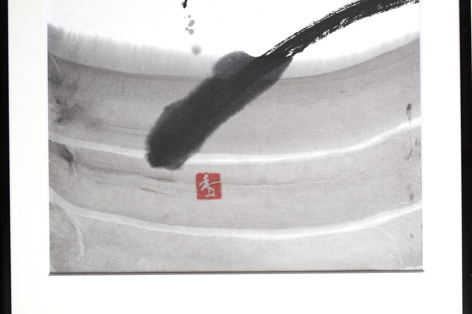 福岡市在住の墨象作家・香心(こうしん)による、「風と街と、心のかたち」シリーズ第3作目。墨象作品《潮結(しおゆい)》の原画です。