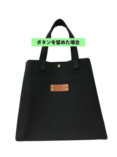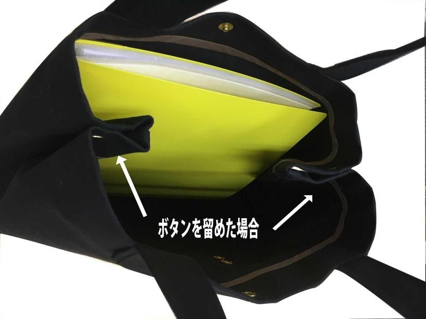 トートバッグについているスナップボタンを使って口を絞ることができます。