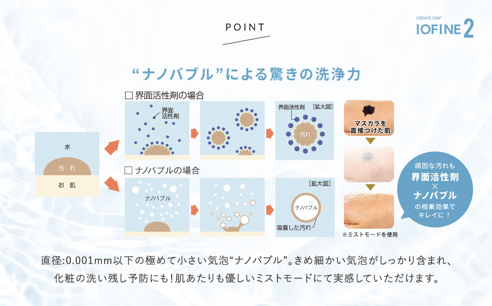 ミクロの泡で通常では落としきれない皮脂汚れや、メイク残り・古い角質等の汚れを優しく洗い流します。