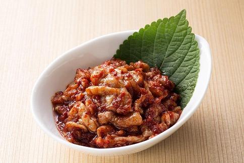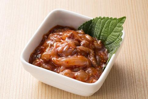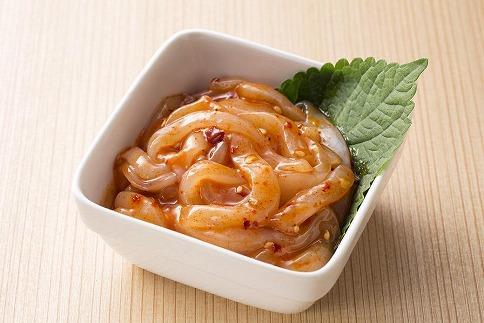 タコの塩辛をキムチ風に味付けました。コリコリとした食感がクセになる一品です。
