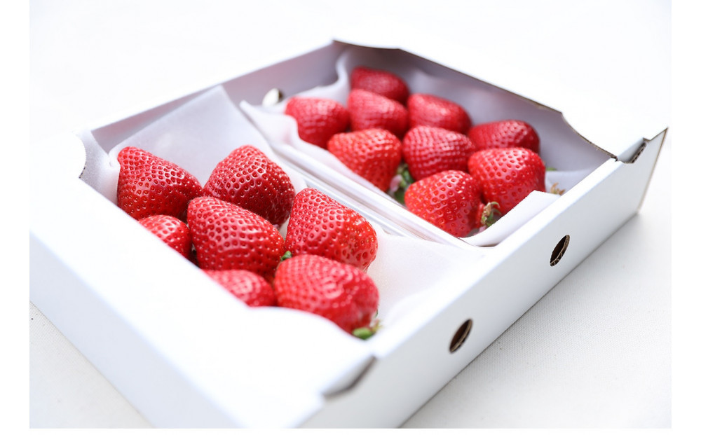 また一般的に量販店など流通しているいちごは、完熟手前で収穫させてます。それでは本当のおいしさが発揮されません。当園では、朝ちぎりのとれたて完熟あまおうを、その日の内に発送いたします。
