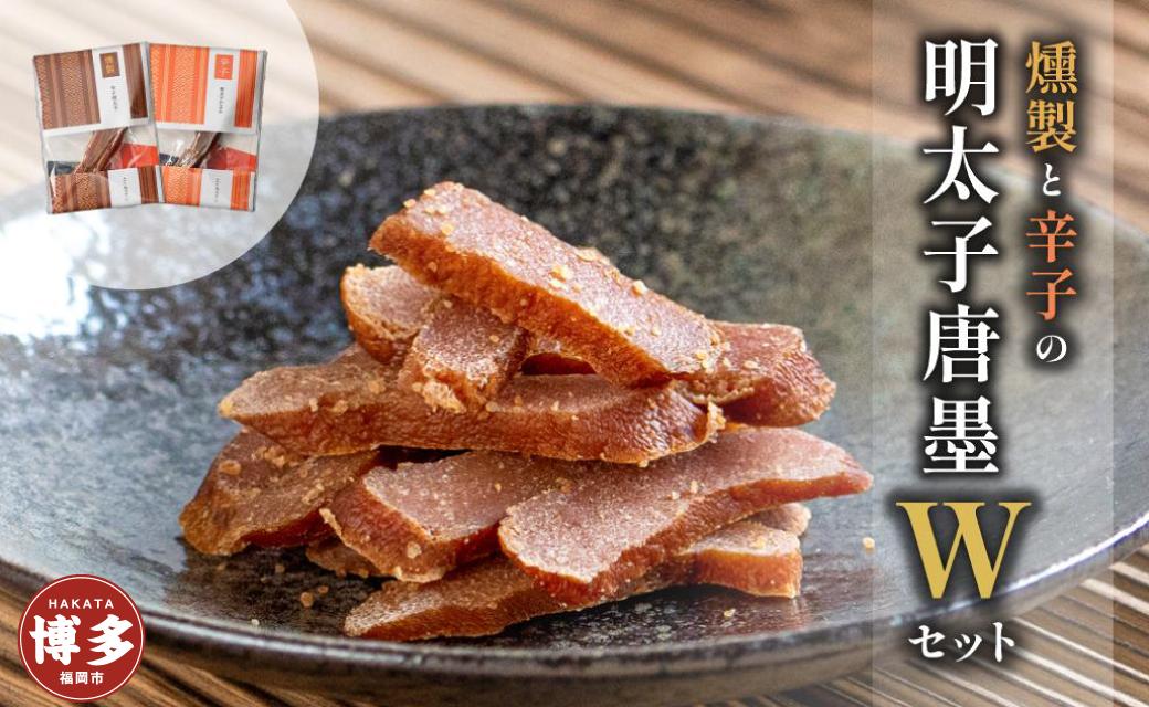 燻製と辛子の明太子唐墨Wセット 【製造地】 製造、販売 812-0026 福岡県福岡市博多区上川端町1-11 【保存方法】 開封後冷蔵 事業者:はかた寿賀や 連絡先:092-292-5569