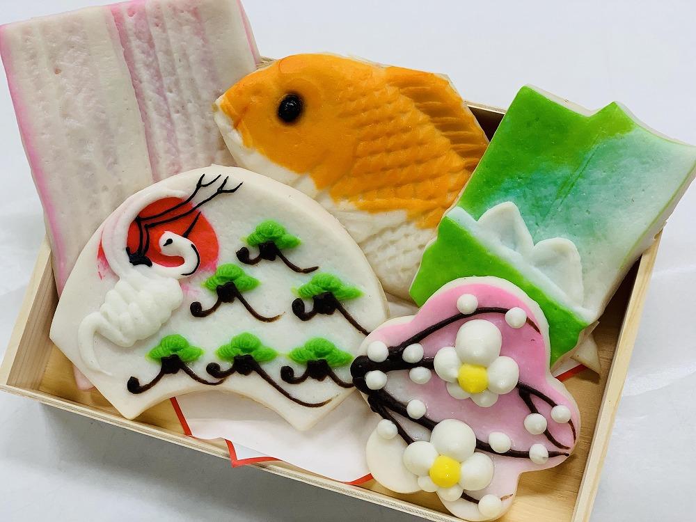 松竹梅や鯛などをあしらった博多の昔ながらの手作り細工蒲鉾です。 【製造場所】 福岡市博多区上呉服町5-172 事業者 :西門蒲鉾本店 連絡先 :092-291-2466