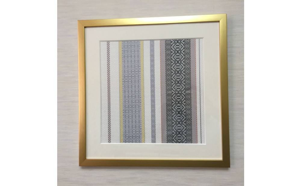 本場筑前博多織の帯地をそのまま使用した博多織の額装です。筑前織物が誇る博多織の繊細な柄や色彩を、インテリアとして飾れるよう額装に仕立てました。和室はもちろん、洋室にも調和するデザインで、お部屋のアクセントとしてお楽しみいただけます。
