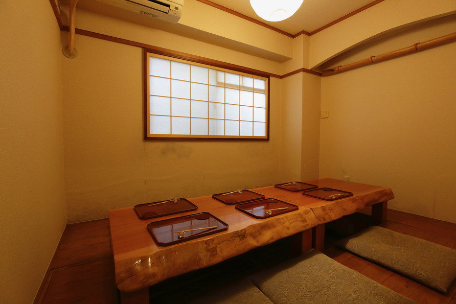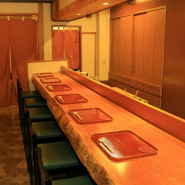 渡辺通の裏手にある、カウンター8席・お座敷1室(6名)の小さな割烹料理店。