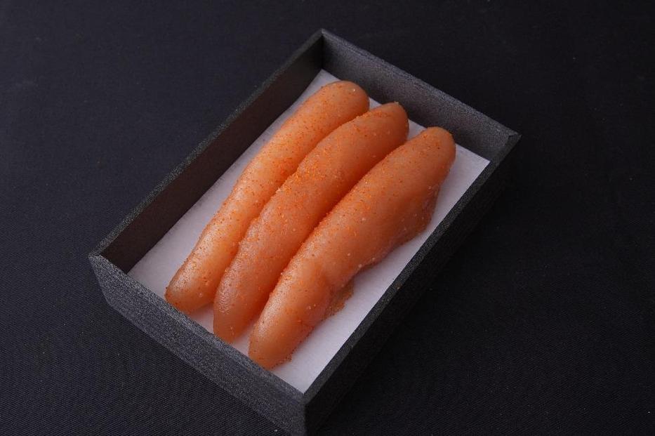 枕崎の鰹節と利尻の昆布でとったダシを贅沢に使い、酒・醤油・味醂をブレンドした独自の漬け込みタレで丁寧につくる明太子。168時間熟成させ、素材そのもののおいしさを大切に作りあげていきます。出汁の風味が口いっぱいに広がり、粒のプチプチ感や卵のハリも感じられ、今までの明太子とは、また違った美味しさを感じていただけます。