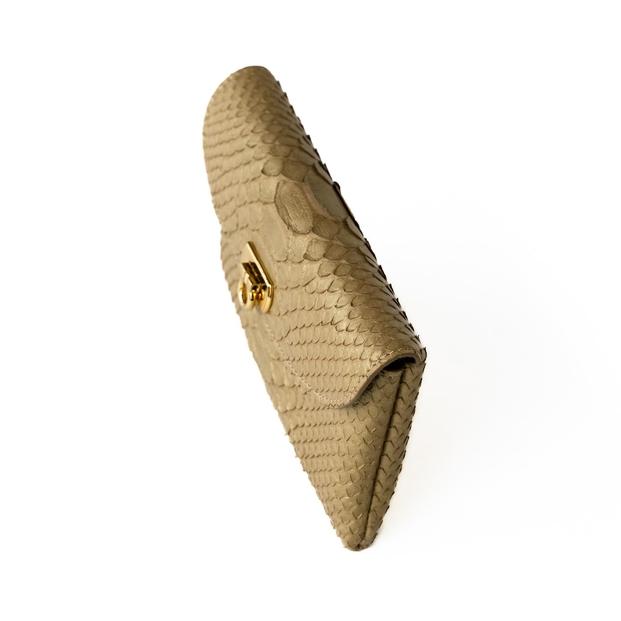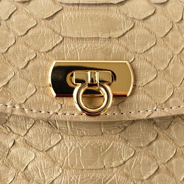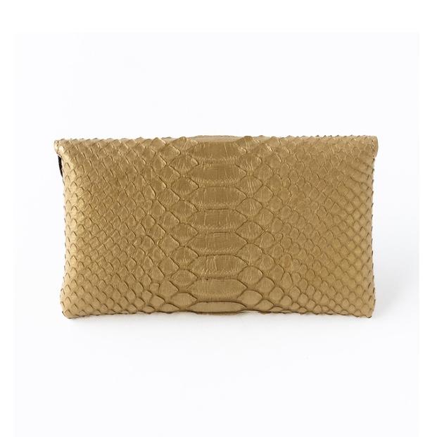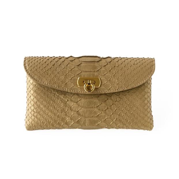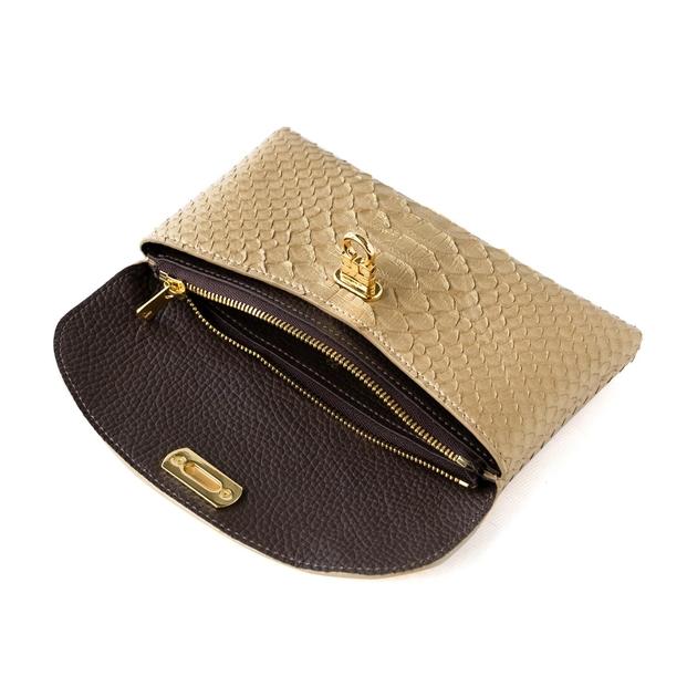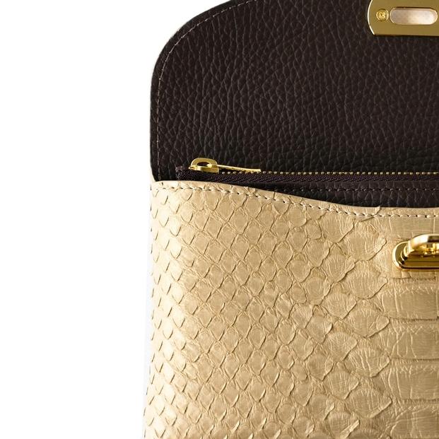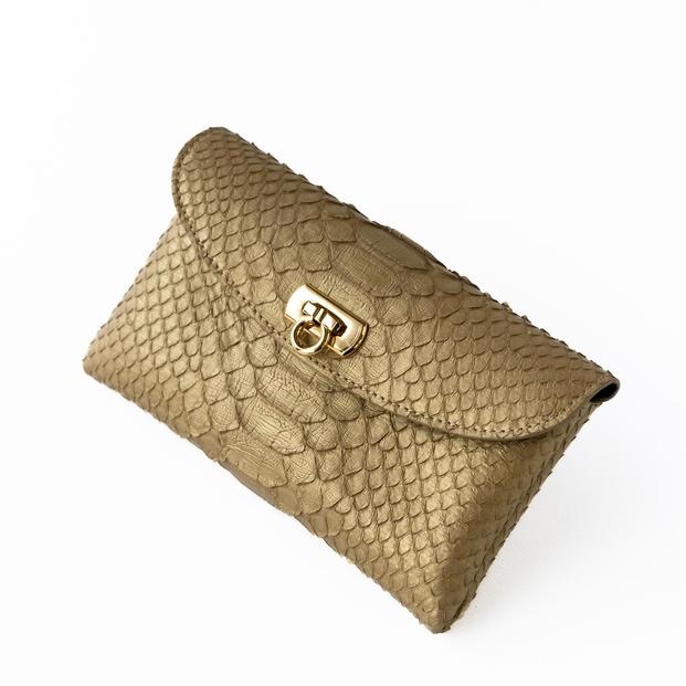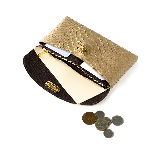 パイソン独特のエキゾチックな鱗模様を活かした、深みのあるアンティークゴールドのカラー。