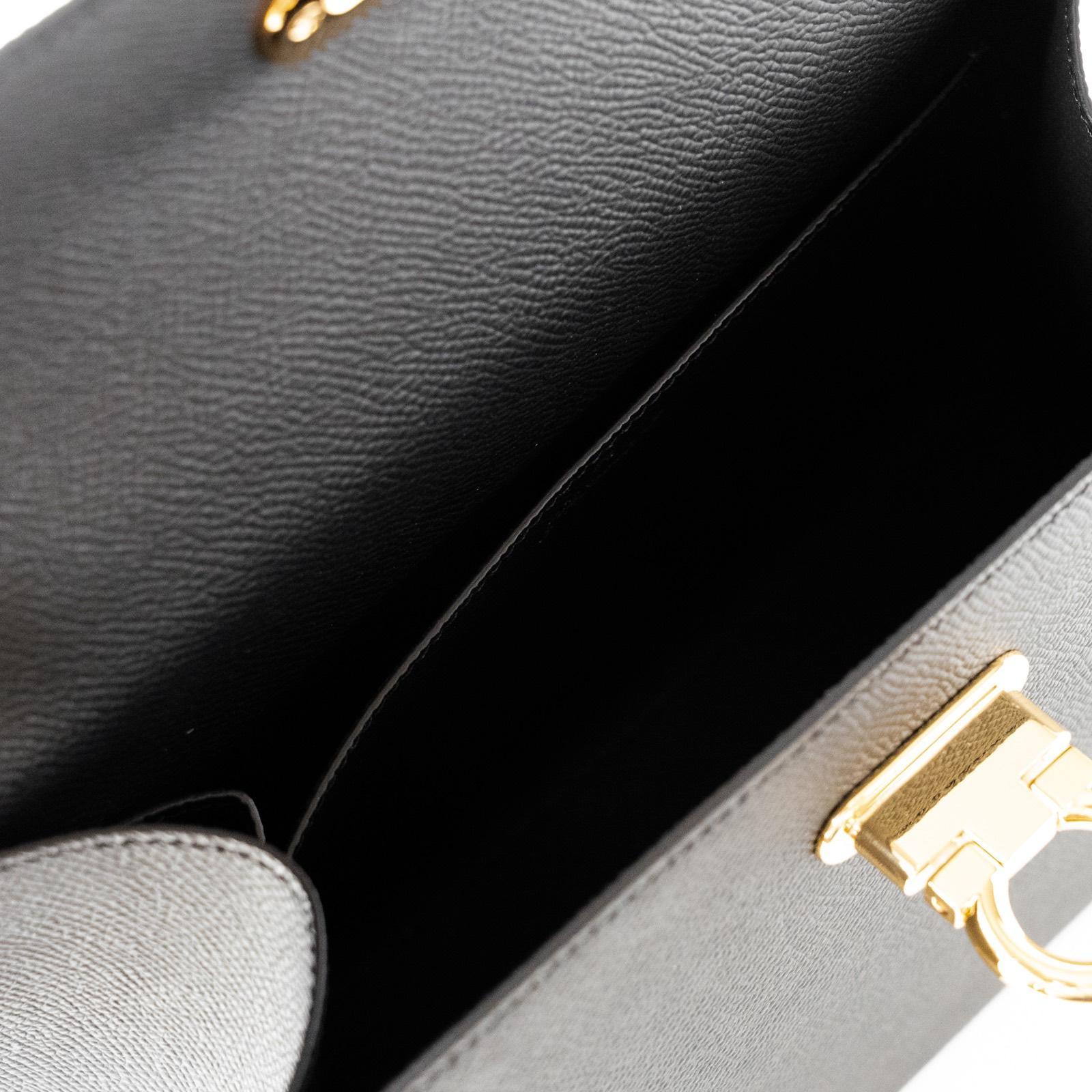 スクエアなフォルムと、やわらかくカーブしたフラップデザインの組み合わせで、ラグジュアリー感を