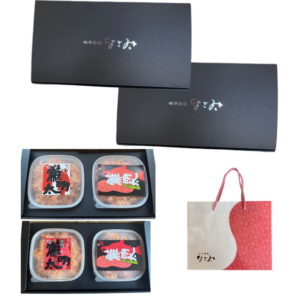 鮭明太150g×2個と、大人の鮭明太150g×2個のセットで、どちらの味も楽しめます。