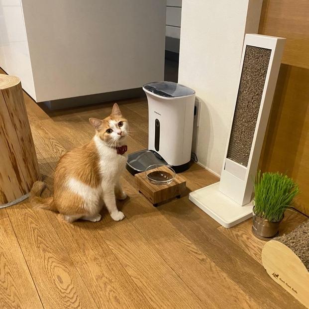 ディッシュテーブルの高さは8cmで、猫や小型犬におすすめします。ペットの体の大きさや食べる際の姿勢に合わせてお選びください。同シリーズには高さ5cmのテーブルもありますのでご検討ください。