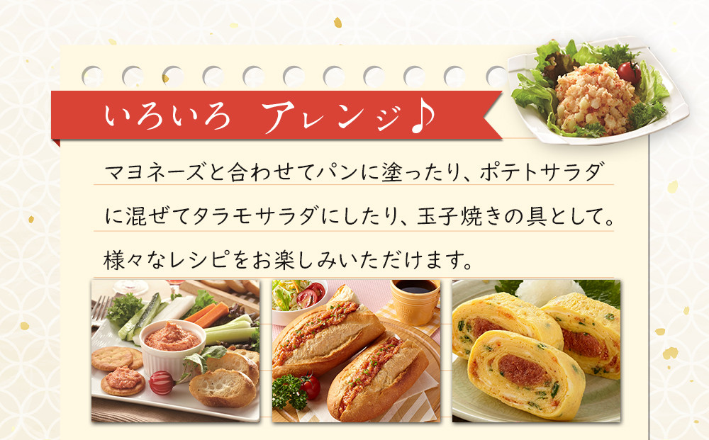 ポテトサラダに混ぜてタラモサラダにしたり…と様々なレシピをお楽しみください。