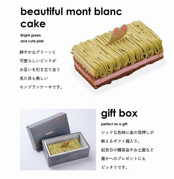 「ピスタチオ」好きにはたまらないモンブラン!贅沢に使用したピスタチオムースと甘酸っぱいベリームースがあわさり素晴らしいハーモニーを奏でます。贈答品に喜ばれる、ギフト箱入り。 事業者:ストロベリーフィールズ 連絡先:092-823-1248 【関連キーワード】 菓子 おかし 食品 人気 おすすめ 送料無料