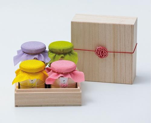 人と人とが繋がる「糸」をコンセプトに福岡市唐人町で生まれたチーズケーキ。商品は全て糸へんの漢字で名付けられ、縁(えん)は4種類の絶品チーズケーキが桐箱に入った人気の贈り物です。ボトルひとつひとつに水引が結われていて、ソースの味に合わせた色とりどりの「ちりめん」を上品に纏(まと)っています。