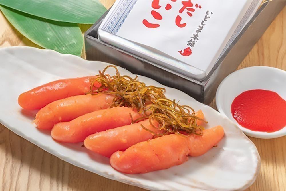 あごだし明太子:新鮮な”たらこ”をたっぷりのあご出汁と昆布出汁で96時間じっくり漬け込みました。塩分を控え職人が手間暇かけて作り上げた、あごだし明太子です。あご出汁の風味を活かすよう、辛味は控えて作っております。辛いのがお好みの方は付属の激辛ソースをかけてお召し上がりください。