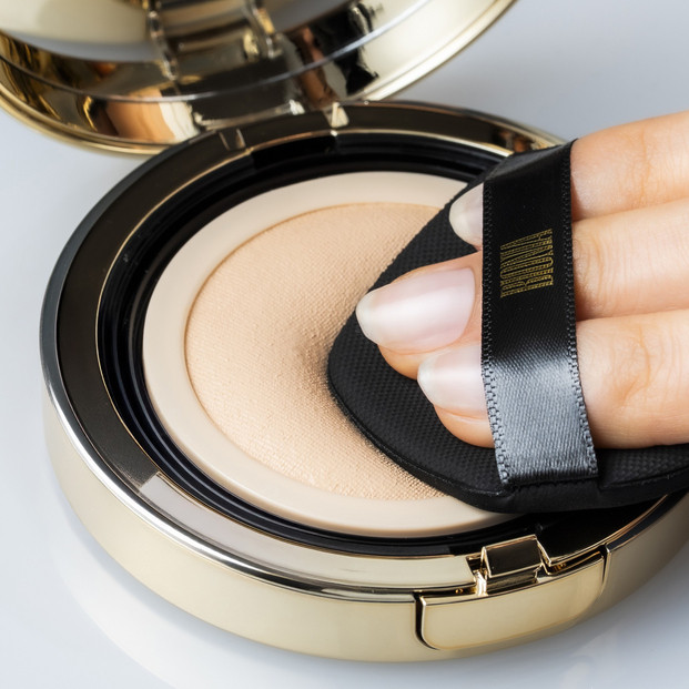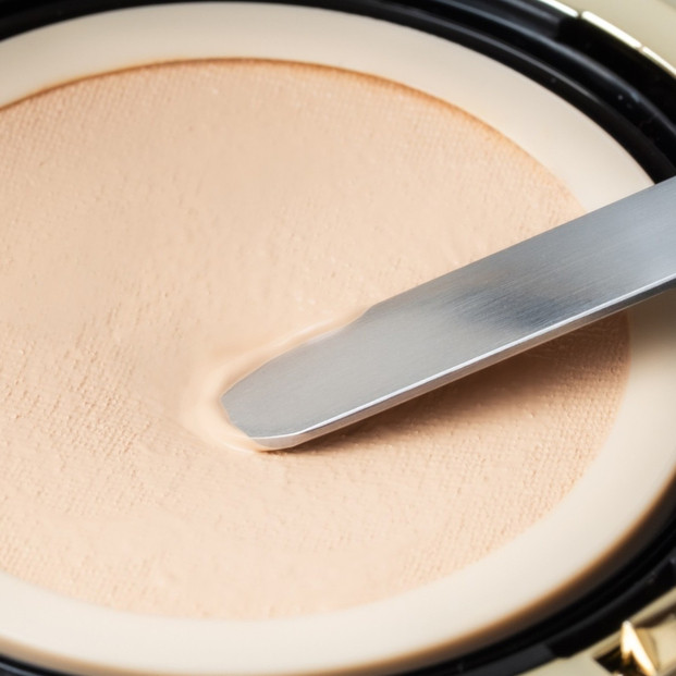 カバー力と透明感を両立したジェルクリーム状ファンデーションを、マイクロメッシュで漉すことで、厚塗り感なく均一にカバー。