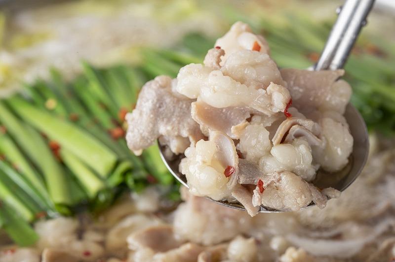 コラーゲンたっぷりの国産の小腸だけにこだわり丁寧に下処理を行った博多もつ鍋星まつり自慢の牛もつ、