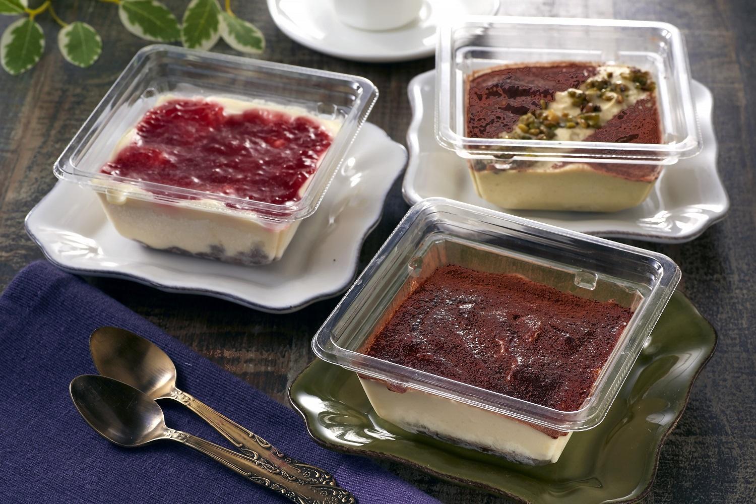 定番のティラミスに加えて、他2種類のフレーバーを加えた3種2個ずつのセットです。ピスタチオは、クリームにはピスタチオペーストを、トッピングにローストピスタチオ。ピスタチオの風味と食感がダブルで味わい豊かに仕上げています。