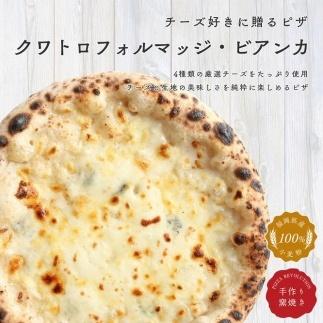 クワトロフォルマッジ・ビアンカはホワイトソースに4種のチーズをトッピング。濃厚でクリーミーな味わいで、チーズ好きの方には是非食べて欲しい1枚です。