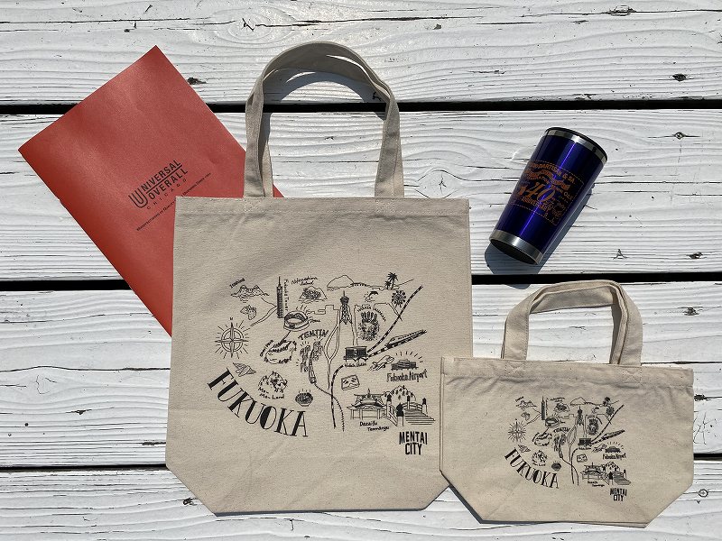 福岡市のMAPを手書きデザインしました。 地元ならではの名所や思わずクスッとしてしまう図柄がカワイイ エコバッグです。 たっぷり容量のエコバッグ(大)とランチトーチ(小)の2個セットでお届けします。 市内工程:ボディの仕入れ、オリジナルデザインの印刷、ラベルの縫製、梱包、発送 市外工程:ボディの製造