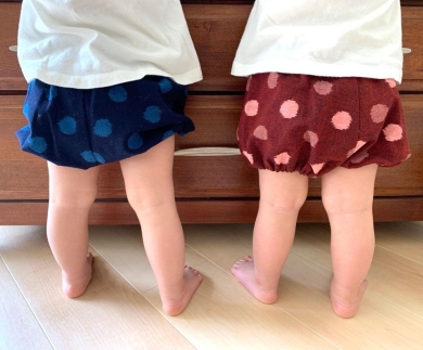 ふんわりとした形でオムツでまんまるなお尻を隠してくれます。