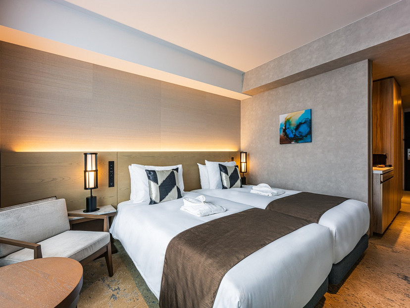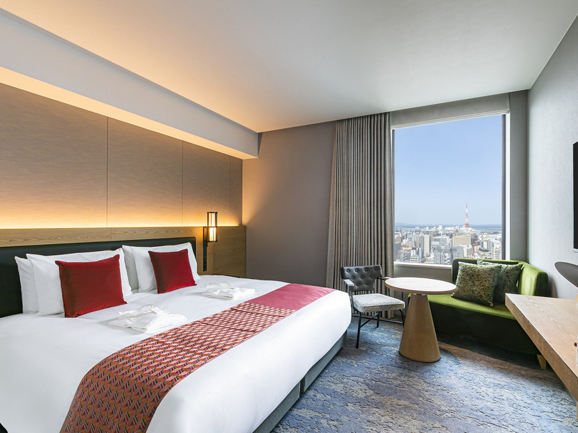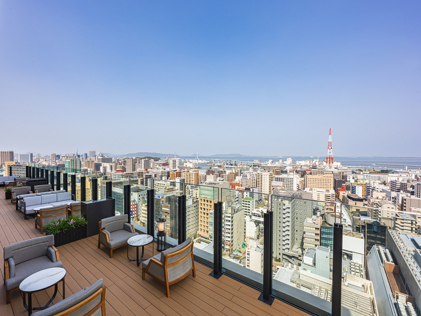 福岡の中心、天神に佇む2025年4月オープンのホテル。駅直結の19階建て、最上階からは煌めく博多湾と活気あふれる街並みを一望いただけます。