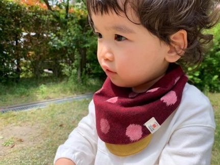 ハンカチにもなる、よだれかけ ”絣(かすり)のスタイチーフ”