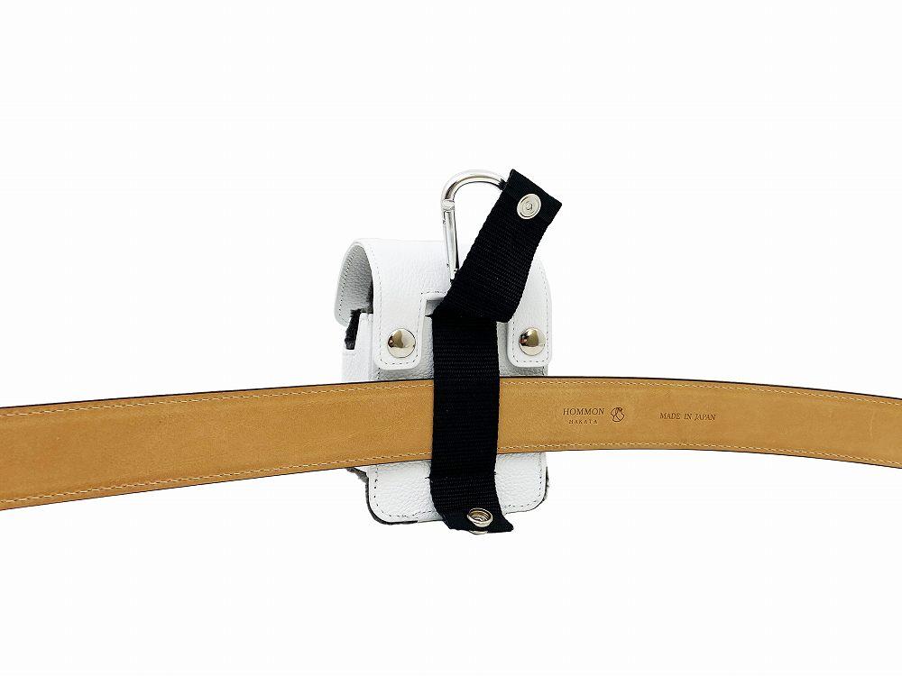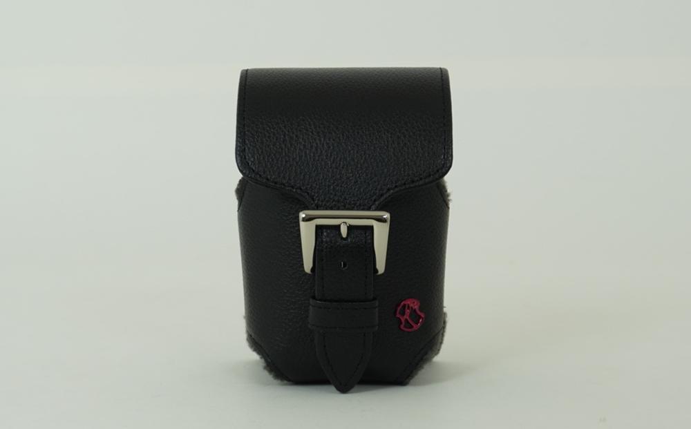 撥水のカーフレザー(牛革)で雨の日でも安心。ホックでベルトに簡単装着。