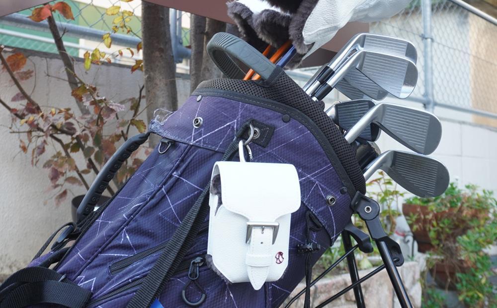 フック付きでキャディーバッグにしっかり取り付け可能。2ヶ所のアジャスターで幅広い計測器のサイズにフィット。